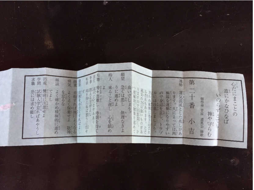 その時、引いたおみくじは、「小吉」。なんとも微妙……
