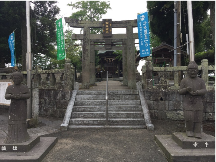 七夕神社から宝満川を挟んだ対岸にある「牽牛社」です。牽牛とは彦星のことです。