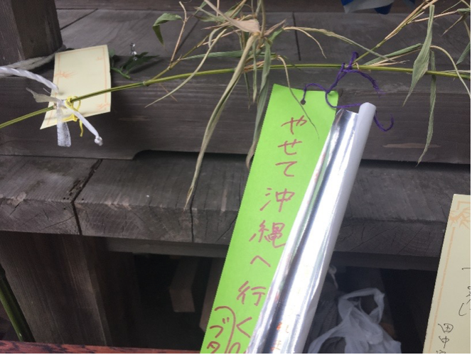 神様に、願いを捧げ、笹に願いを括りつけました。