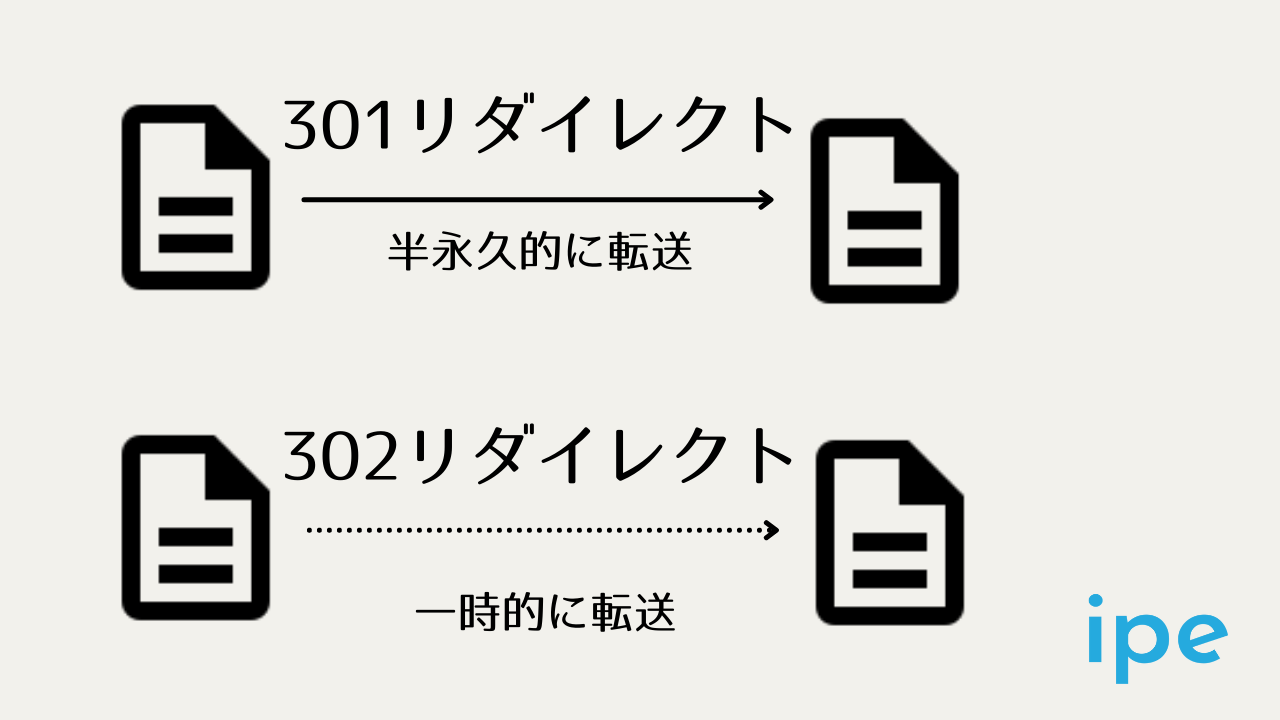 301リダイレクトと302リダイレクトの違いは上記の通りです。