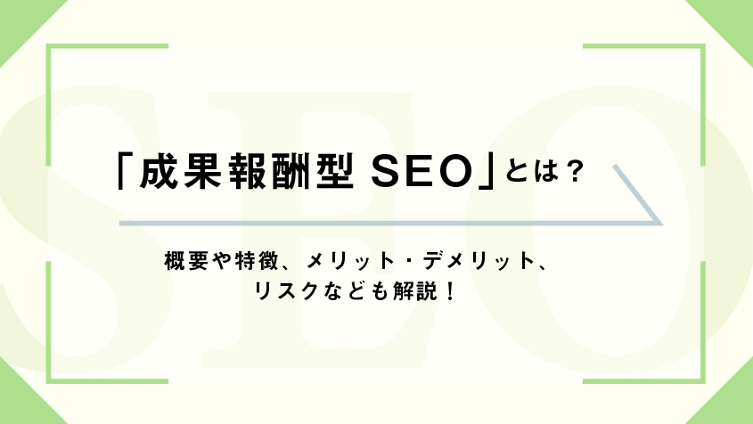 今回は「成果報酬型 SEO」に焦点を当て、その概要や特徴、メリット・デメリット、リスクなどをご紹介します。気になるポイントを一挙確認してしまいましょう。