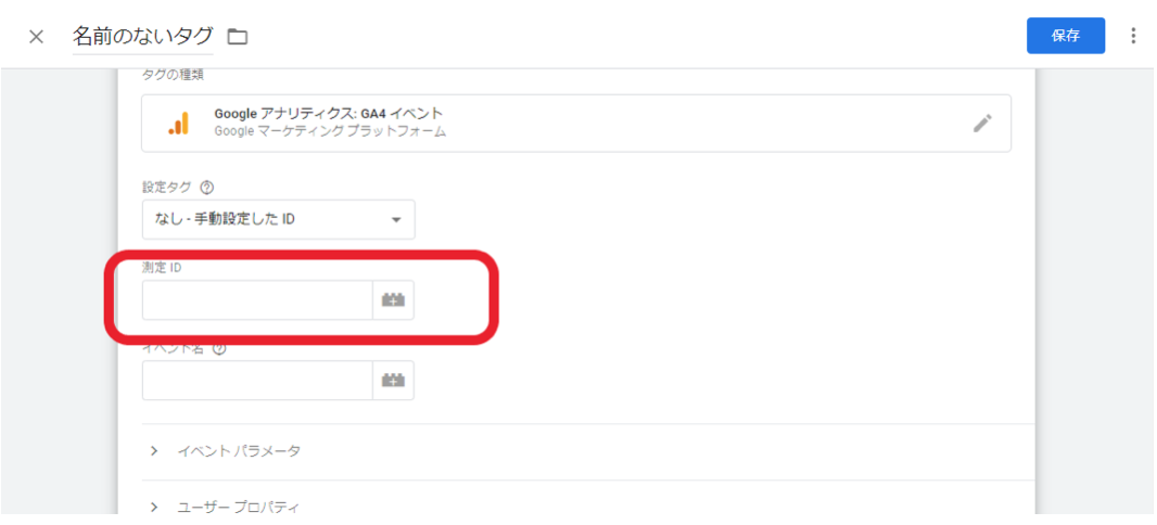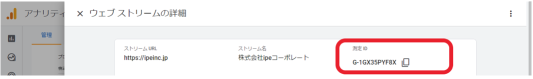 測定IDを入力します。測定IDはGA4の「データストリーム」の「管理者」セクションで確認できます。