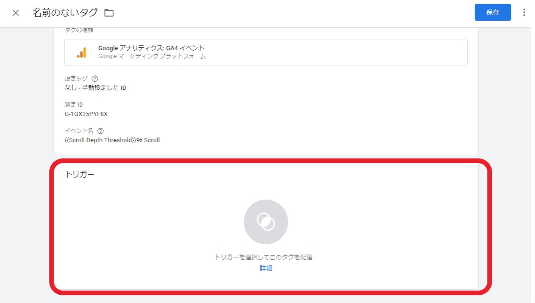 次にタグを起動するトリガー設定を行います。