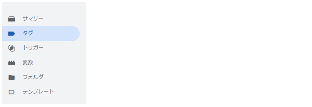 タグの設定を行います。サイドメニューの「タグ」をクリックしてください。