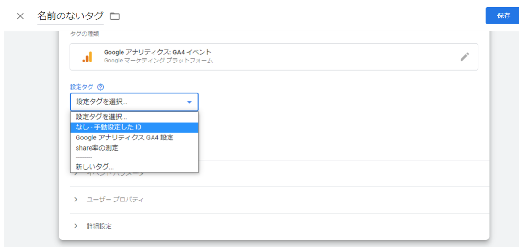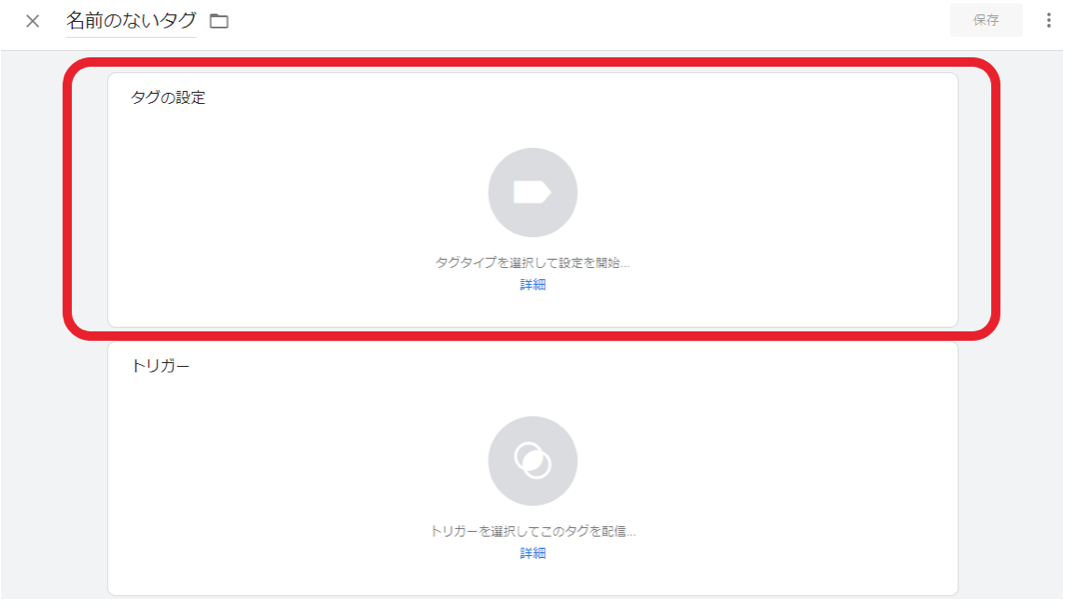「新規」を開いたら「タグの設定」をクリック