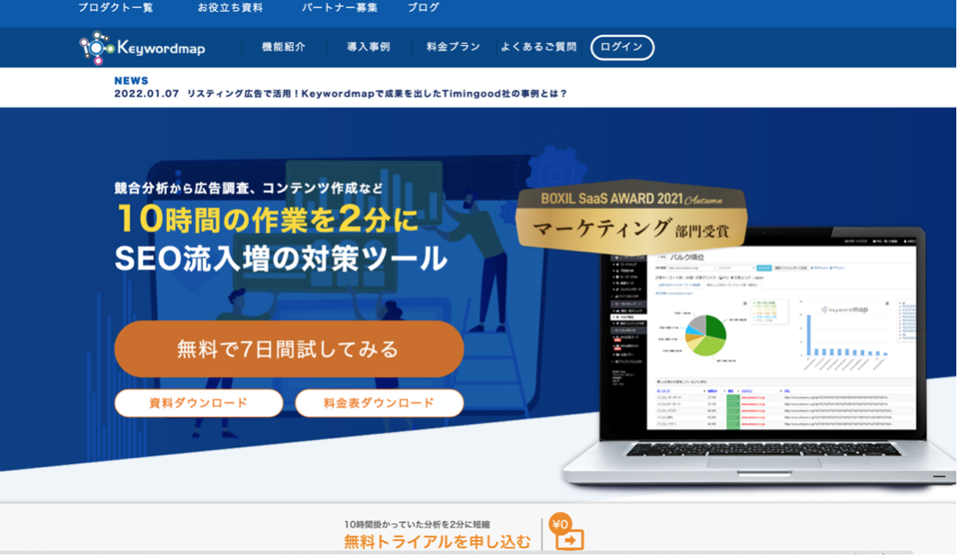 Keywordmapでは、全機能開放の1週間無料トライアルも実施しているので、気軽に試せます。