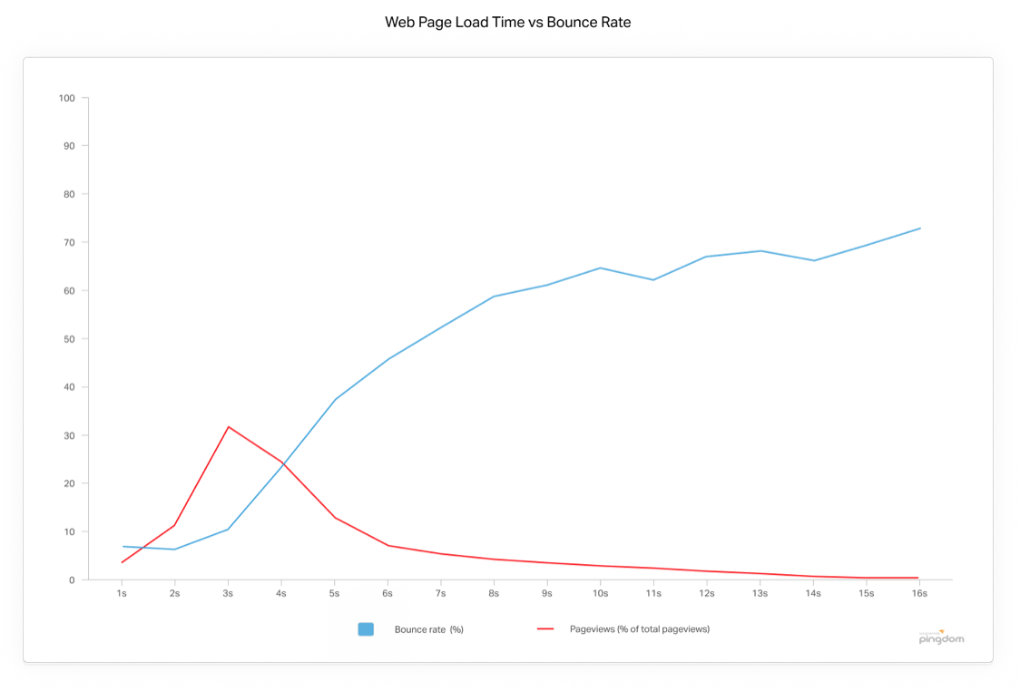 Pingdom社の調査では、2秒以内に表示されるページの直帰率は約9%、5秒かかるページでは38%まで高まるという結果を示しています。「ページスピード」は、それだけ直帰率の高さに比例するのです。
