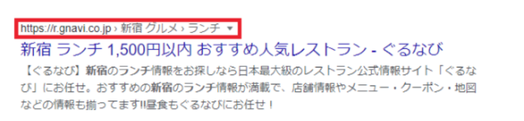 パンくずリストのリッチリザルトは、Webサイトの階層構造を示したパンくずリストを、URLの箇所に表示させます。