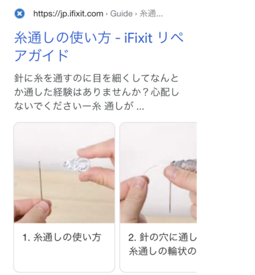 ハウツーのリッチリザルトは、物事の手順や方法を画像や動画を交えて表示させます。