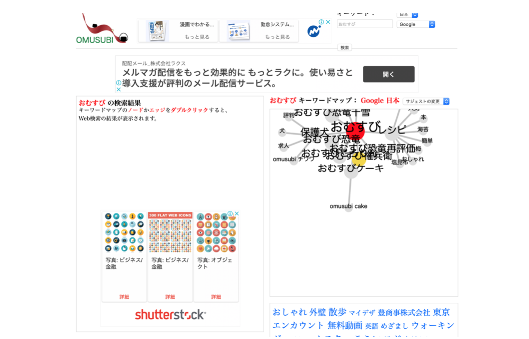 OMUSUBIは無料で使える関連キーワード検索ツールです。OMUSUBIでは、関連キーワードがキーワードマップ形式で表示されます。検索ボリュームごとに、階層化されているため、検索ボリュームによる、対策キーワードの整理もしやすいです。また、一目で、関連キーワードを網羅的に把握できるため、検索ユーザーの検索意図も把握しやすくなります。無料で利用できて、キーワードを打ち込むだけのシンプルな設計なので、気軽に試せます。